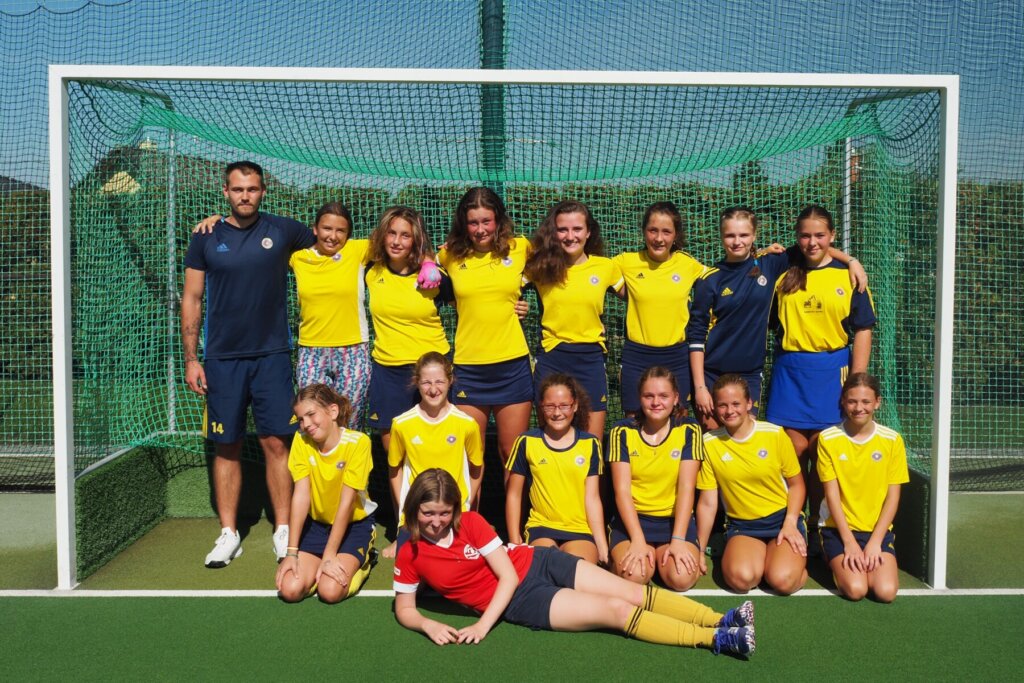 Horní řada zleva: Marek Skála - trenér, Šárka Valešová, Ema Dokulilová, Eliška Šrachtová, Kristýna Daňsová, Sára Bartoňová, Nikol Mudrová, Sofie Šťastná